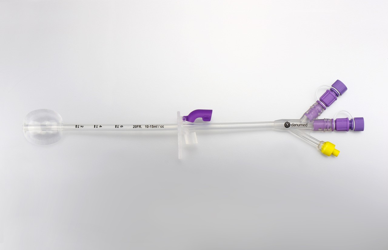 Zgłębnik gastrostomijny danumed® GastroTube Y ENFit to zgłębnik gastrostomijny z balonem retencyjnym do długotrwałego żywienia dojelitowego, wyposażony w miękką zewnętrzną płytkę z kątem 90° dla bezpiecznego i dyskretnego mocowania (strukturalna konstrukcja płytki zapewnia doskonałą cyrkulację powietrza w obszarze stomii) oraz dwa porty ENFit zakończone koreczkami.