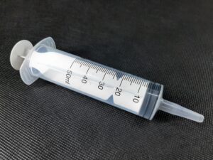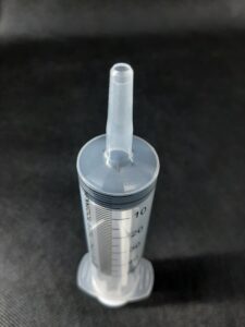 Strzykawka cewnikowa z dodatkowymi złączami luer, wykorzystywana jako strzykawka do podawania żywienia przez zgłębnik “starego typu” – nie posiadający złącza ENFit